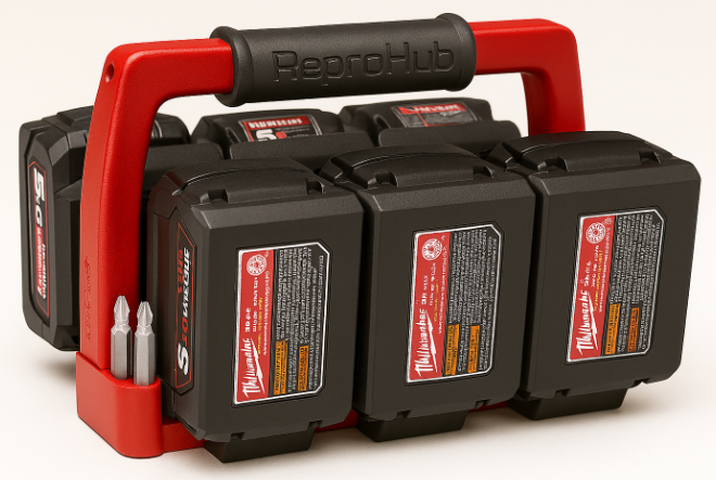 Holds 6x 18V  Milwaukee batteries securely — no more loose gear rolling around